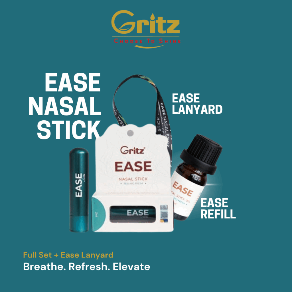 EASE Nasal Stick ialah inhaler yang berasaskan minyak pati tumbuhan cengkih, pudina dan limau gedang, 100% tulen tanpa bahan kimia dan disahkan bebas campuran oleh lab Inbiosis UKM.