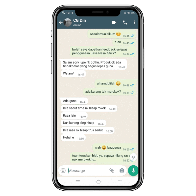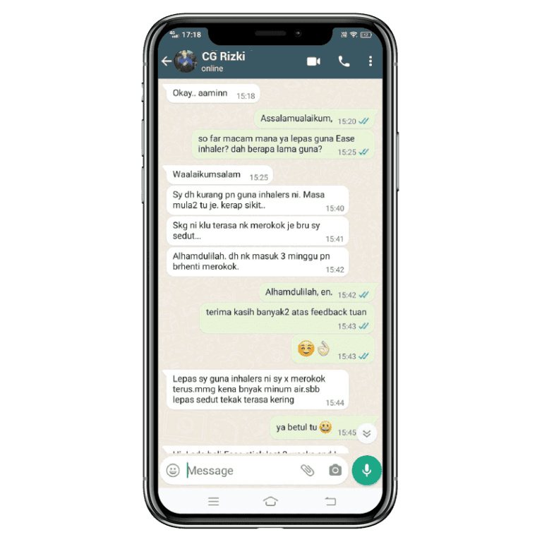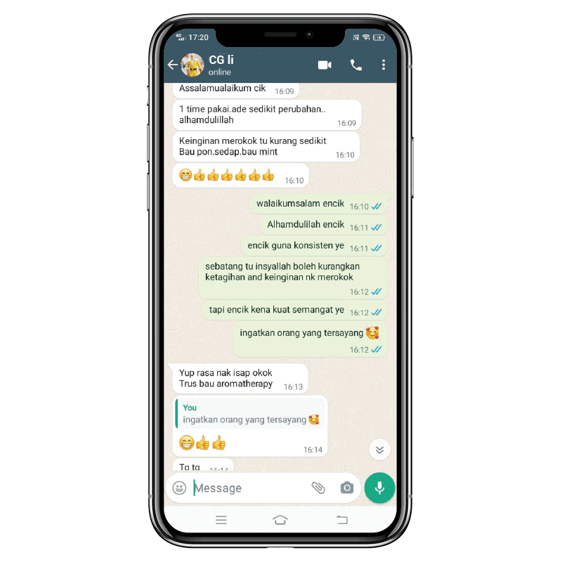 produk memang berkesan bagi sesiapa nak kurangkan ketagihan merokok. apa yang saya boleh cakap 60% membantu sebab dia buat kita rasa payau dengan rasa rokok tu. 40 % lagi dari nawaitu kita tentunya kena kuat untuk berhenti . selain tu saya suka hidu bau ni dapat jugak kurangkan resdung saya waktu pagi2