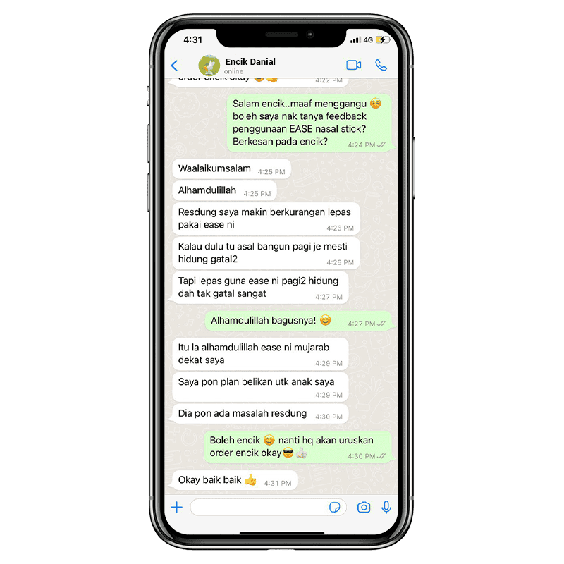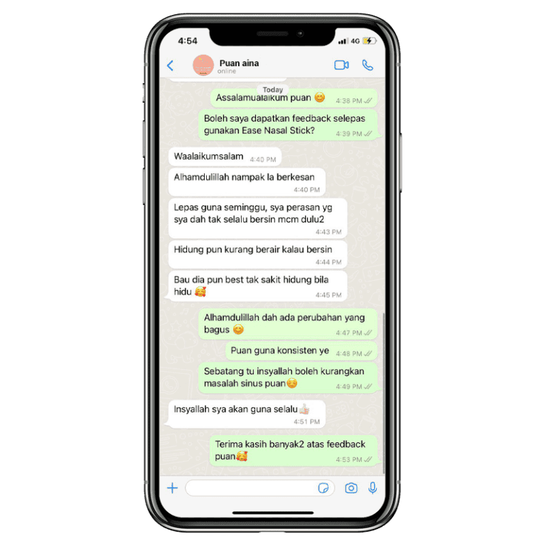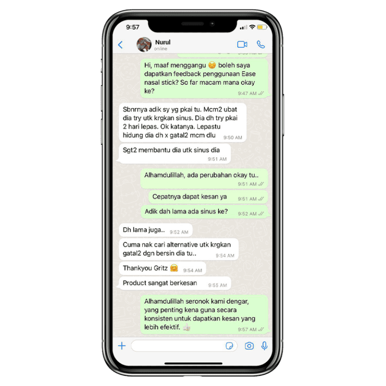 Sakit kepala akibat resdung selalu mengganggu aktiviti seharian suami. Sekarang dah jarang makan painkiller, sejak diperkenalkan dengan EASE Nasal Inhaler.